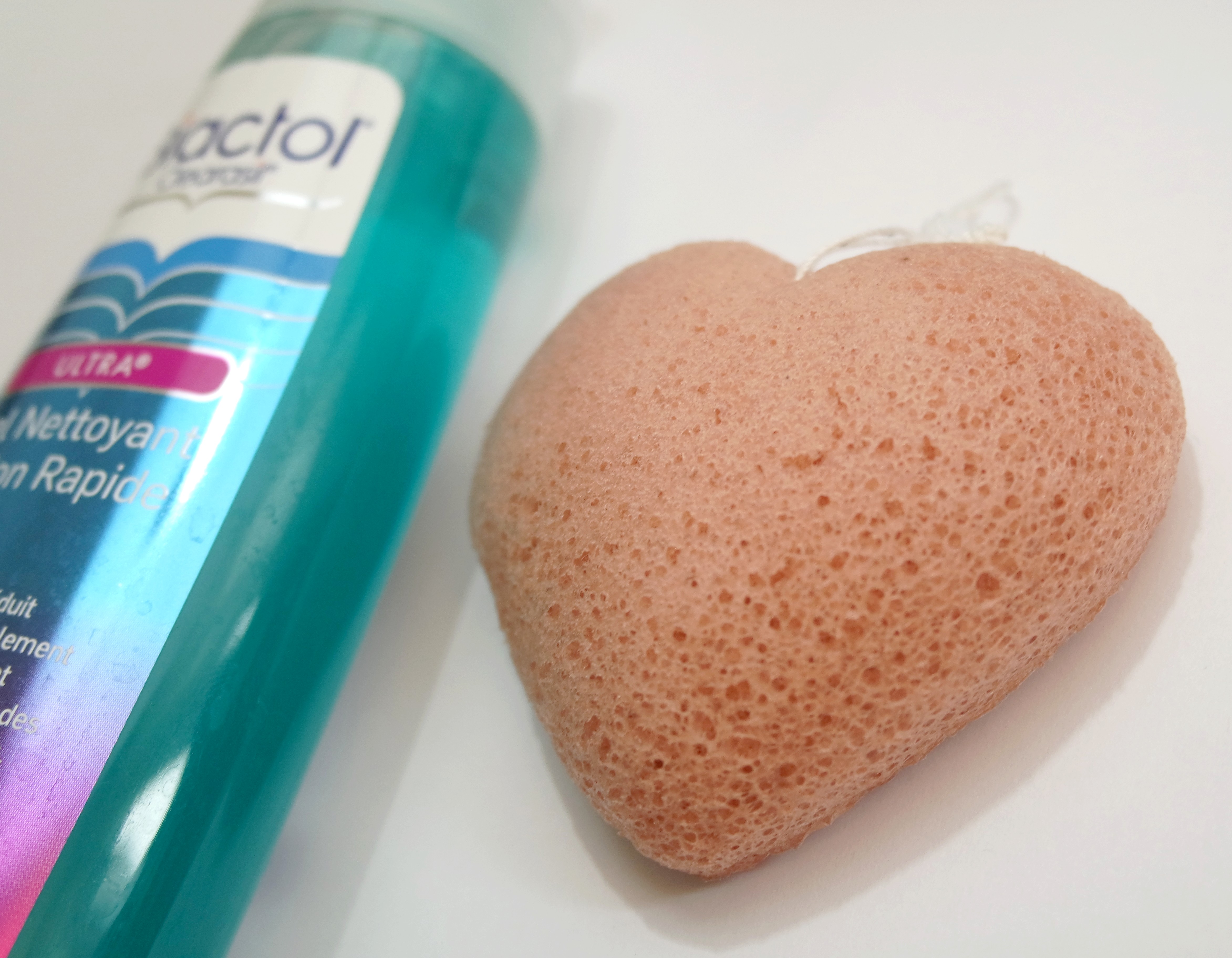- Cette petite éponge en forme de coeur est une éponge exfoliante de la marque Konjac. Je l’utilise tous les jours pour me nettoyer la peau et pour bien l’exfolier. Je la trouve top !