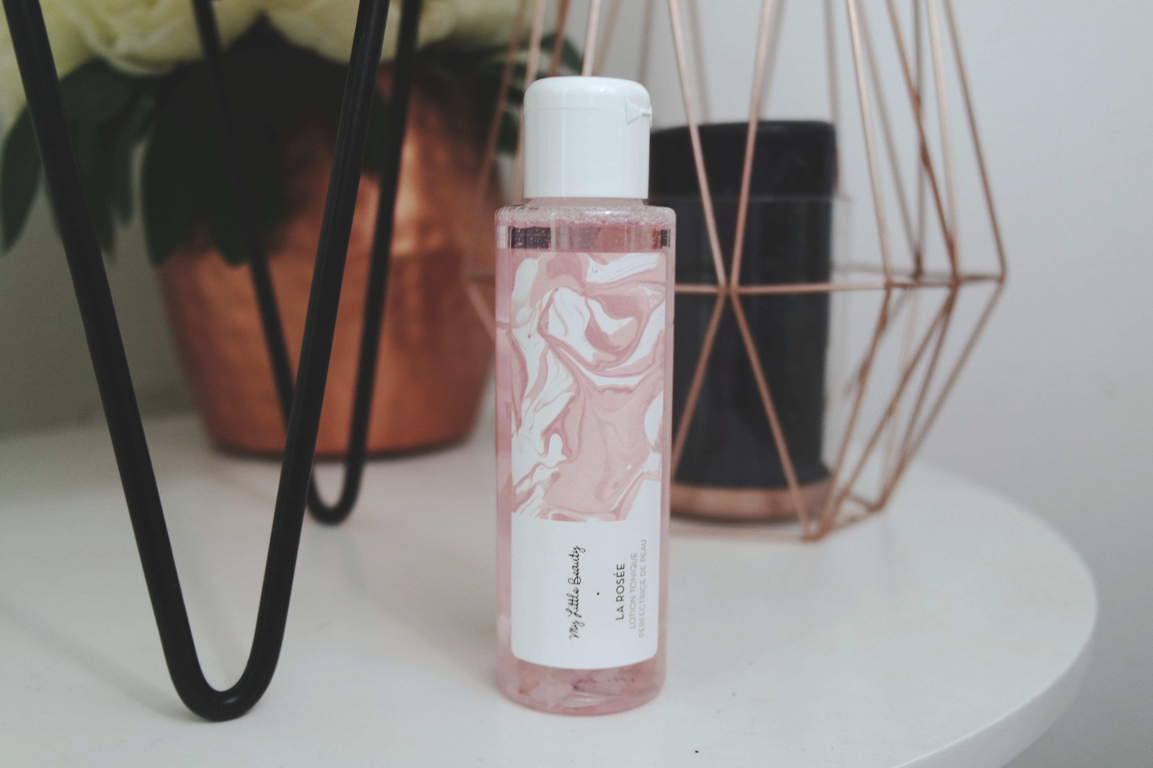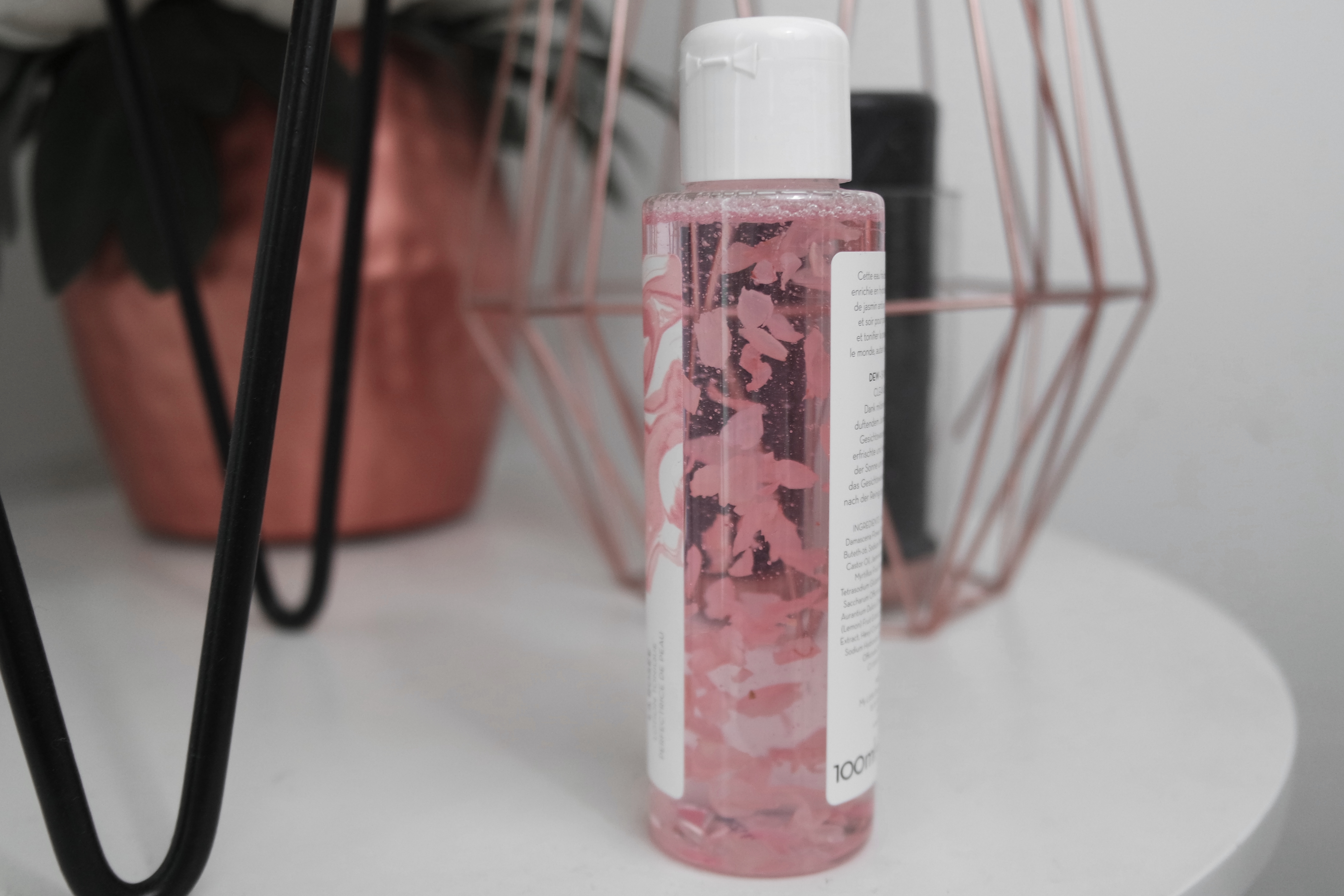 Ensuite, on y retrouve une superbe lotion tonique perfectrice de peau au prix de 12€. Ce qu’elle a de particulier c’est qu’on y distingue de jolie pétales de roses flottant à l’intérieur de celle-ci. J’adore je trouve ça vraiment chouette ! Et moi qui n’aime pas les odeurs de fleurs en général je dois dire que celle là passe plutôt bien et l’odeur est très agréable. Elle s’applique matin et soir pour parfaire le démaquillage et tonifier la peau.